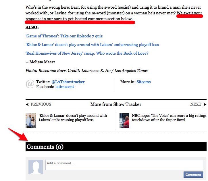 24 hours after latimes.com issues this call to arms, we await the anticipated “heated debate”! via Blog fight! ‘Cheers’ writer trades barbs with Roseanne Barr