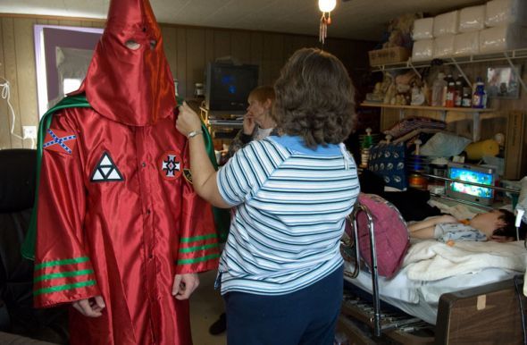 Hate still lives–and is flourishing if the data from the Southern Poverty Law Center is to be believed. Speaking to that point, Mother Jones magazine has a great photo essay on Ms. Ruth, the seamstress of the KKK (accompanied by a troubling series of interviews well worth listening to).