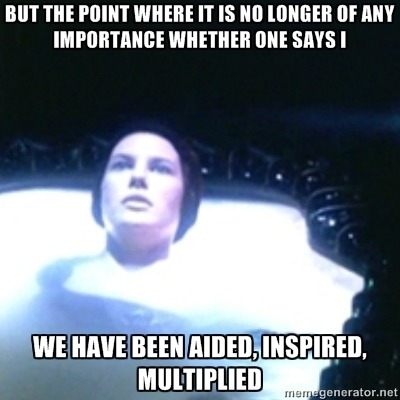 Because it is a proven fact that I am a nerd, my Twitter interactions with my friend Emily result in stuff like this: Battlestar Gualactica or the realization that the Hybrids were scripted by Deleuze and Guattari.