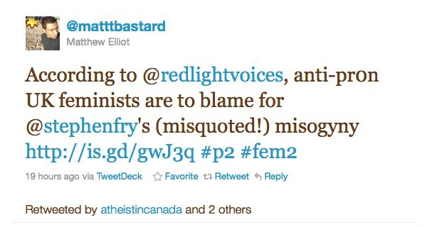 Of all the mentions, this is the one that amused me the most, namely because of how it misses the point entirely. I “blamed” feminists for Fry’s statement? Uh? Where exactly did I do that? Also, a good lesson learned in this: next time I see someone quoted I will think twice about the context of that quote and wonder if this is exactly what the person meant. Not that I wasn’t doing it already, but it is quite amusing/ annoying now that it happened to me.