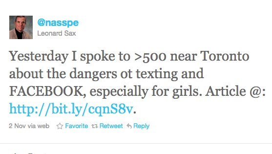 Thanks to Elly (of Quiet Riot Girl fame), I’ve been introduced to Leonard Sax, self appointed expert on “girls” and gender scholar extraordinaire, author of Why Gender Matters, a pseudo scientific text on the biological imperatives that define gender and how parents should take care of “little girls” so that they become wholesome women.