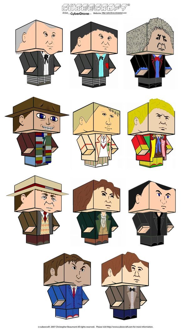 There are several Tardis (Tardii? Tardises?), including one in pink (!!). Also, a Pandorica, Captain Jack, Weeping Angels, Cybermen (several of them) and of course, daleks, plenty of daleks.