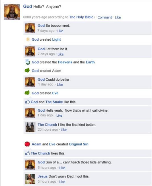 How fitting that the image used for God is a Monty Python illustration. Also, who created The Snake?!