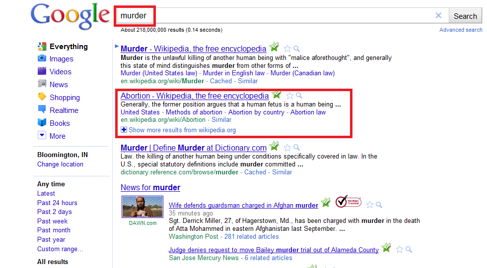 A Redditor found this out and I just tested it by searching the word “Murder” myself. True fact, abortion was the second result. I guess this is yet another proof that the conservative right has completely hijacked the discourse around reproductive rights.