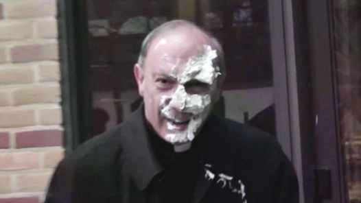 One of those who ran up and slapped a custard pie in Leonard’s face told Belgian media that “for all those homosexuals who daren’t tell their parents they are gay, for all those young girls who want to have an abortion, he absolutely deserved it.”