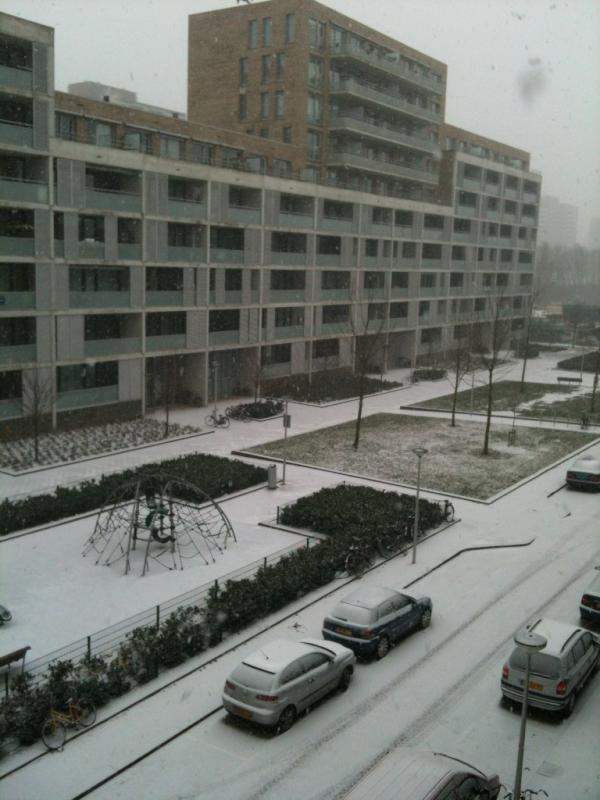 It is snowing intensely in Amsterdam*. Also, the streets are empty and it is oh, so quiet right now.