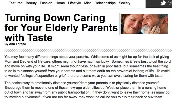 It might read like something out of someecards but this feature, courtesy of the aptly named The Ladies’ Monthly, will teach you a fundamental life skill: how to dump your parents in an elderly home in a tasteful manner. Instructions to set up the floral arrangements for their farewell party, sadly not included.