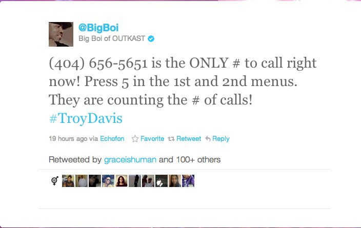 Just saw this on Twitter regarding Troy Davis. Apparently, the District Attorney’s and the Review of Paroles’ phone numbers are no longer working. Instead, people calling to request clemency are advised to contact (404) 656-5651 and press 5 in the first and second menus.