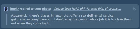 Learn something new every day! As hookr pointed out, there is a Love Doll rental service in Japan and apparently, they also rent by the hour. Indeed, I pity the poor soul whose job is to clean them up.