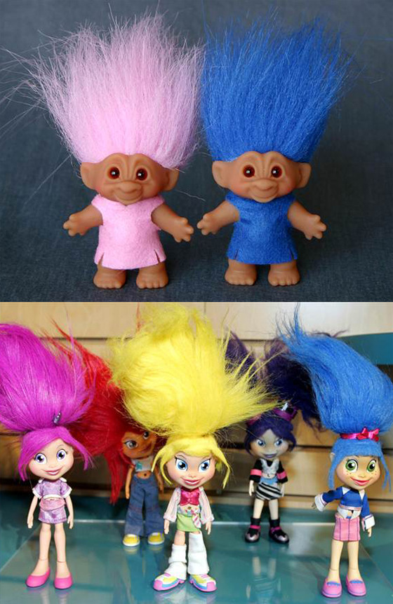 Retro toy doll sensation “Trolls” are coming back to shelves with a huge makeover. Instead of chubby bodies and hideous faces, the new dolls are basically “Bratz” with giant hairdos. The creatures are called “Trollz” and are tied in with an animated cartoon series. This is actually their redebut; after a lackluster offering in 2006, they are trotting out the dolls and the cartoon for another go-round. Second second time’s the charm?