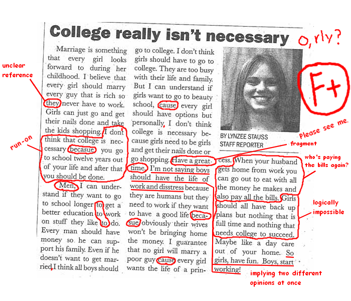 See, don’t waste your time, college isn’t really necessary. Also: “Girls should all have back up plans but nothing that is full time and nothing that needs college to succeed”. And what exactly would such back up entail? Pan handling skills? Juggler in the town square?