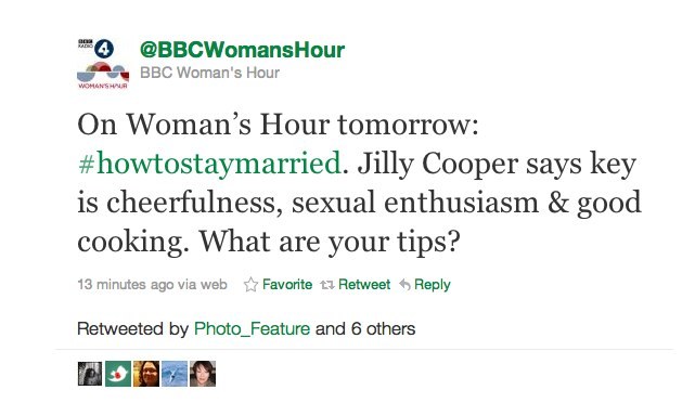 Nice to see the BBC concerned with “modern” values! On next week’s episode “The secret to a successful job: do not have aspirations” and “Don’t let that silly head of yours be filled with thoughts of equality”.