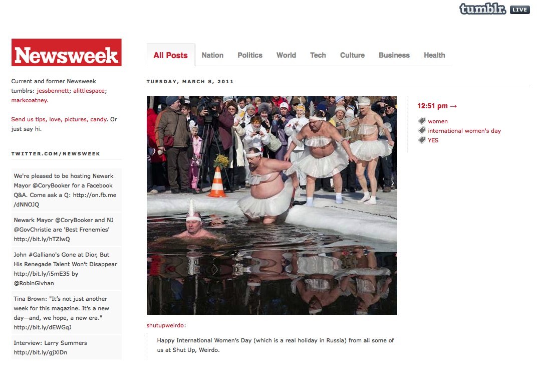 This, presented without a shred of commentary is what Newsweek just posted. Right there with their “serious news organization” logo. HA HA HA! How funny, Newsweek!