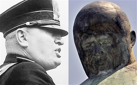 With its bald head and beetle brow, the statue, which now dominates one of Rome’s biggest squares, bears distinctly Churchillian features, although Romans were struck more by its resemblance to Benito Mussolini.