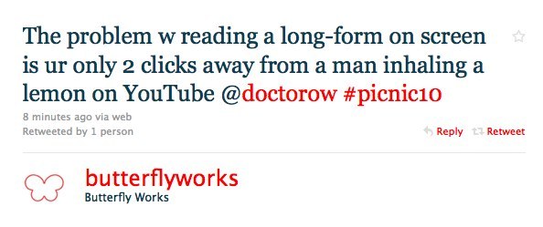 Cory Doctorow, in Amsterdam today, while explaining the challenges of writing for an electronic platform. via