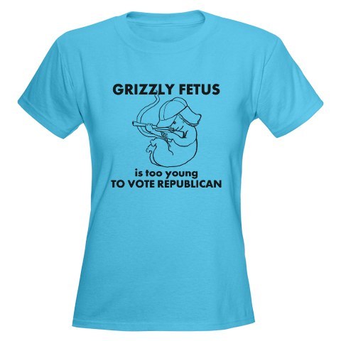 Regrettably, Grizzly Fetus doesn’t know that I plan to donate some of the proceeds of his campaign t-shirt to an abortion fund. Poor Grizzly Fetus! But I am not sure which one I will donate to, at the moment. Let me know what your suggestions might be!