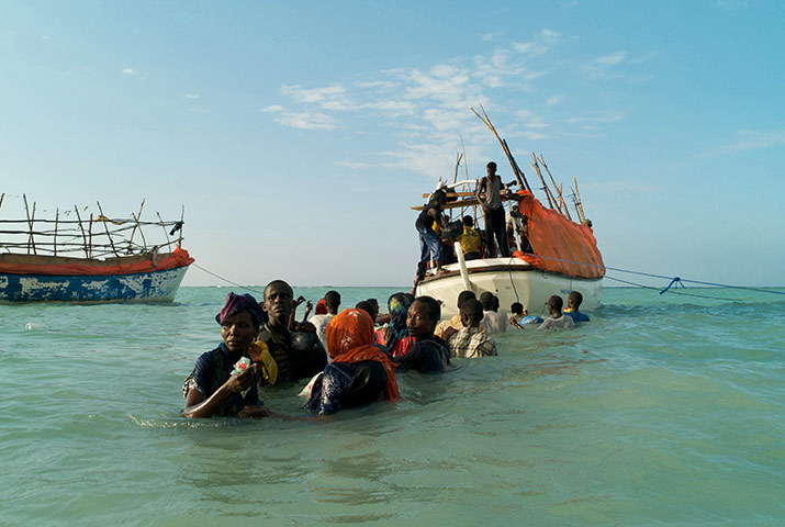 Standing in choppy shoulder deep water, Somali refugees look back anxiously from the sea as they try to locate friends and relatives left behind on Shimbiro Beach. Preparing to board one of three smuggler’s boats that will depart simultaneously for Yemen, many of the passengers have become separated from those that they had hoped to make this high-risk journey with. As the crew hauls passengers from the water, each is already soaking wet as they step onboard. Before they even depart, the one hundred and twenty eight Somalis and Ethiopians tied down inside the tiny boat begin to shiver as strong winds blow in for the sea. Their fate is now sealed. Only eleven of the people who took this boat were to ever reach Yemen alive