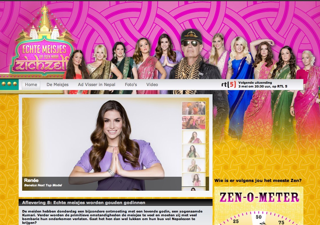 For the purpose of “searching for their true self”, these “real girls” dress up in faux “Oriental” garb and travel to Nepal where they face challenges, described in the website as “facing the loud and physically coercive Nepalese bus drivers”, “washing a bikini in a public square next to a Holy Temple” or being part of “a confrontational road movie in which emotions run high but hilarity prevails”.