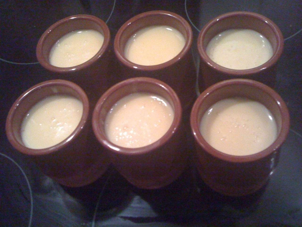 These very, very handsome terracota mini cups contain one of my favorite things: crema catalana. They are now cooling off but I can barely contain my grubby hands.