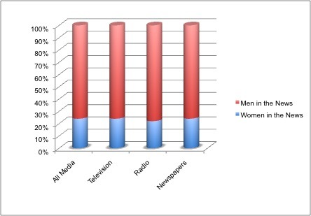 The graphic above shows the total media representation in the news for Men vs. Women. Even though women make half the world’s population, women’s representation in the news, for all media, is at 24%.